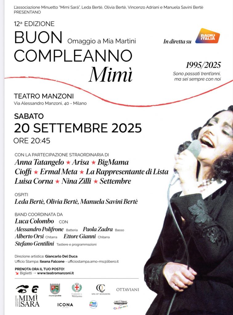 Sarà un grande compleanno per Mimì, Milano infatti si prepara ad accogliere la dodicesima edizione di Buon Compleanno Mimi, in programma sabato 20 Settembre 2025 alle ore 20:45 presso il Teatro Manzoni.